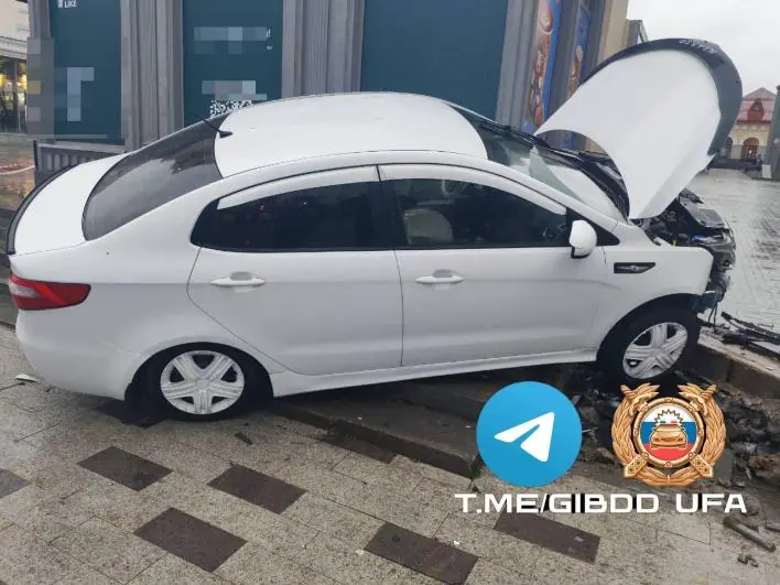 В Уфе автомобиль врезался в одно из зданий на Гостином дворе. Ролики и фото выложили в телеграм-каналах около 17:30 часов вечера 14 октября.