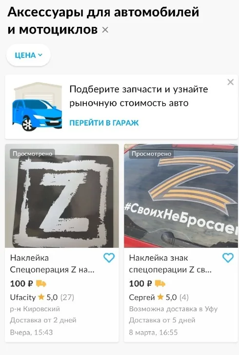 Уфимцы продают наклейки с символом Z. Объявления появились на сайте avito.ru в начале марта. Выбрать можно несколько вариантов. Есть даже в расцветке георгиевской ленты. Стоит одна 100 рублей. Как ранее пояснили в минобороны, символ Z расшифровывается, как «За победу», а символ V – как «Сила V правде» и «Задача будет выполнена». Сейчас знак Z люди используют, чтобы поддержать российскую армию в спецоперации на Украине. Например, студенты БашГУ выстроились в одну такую большую букву, а мэр Стерлитамака Рустем Газизов поставил знак на аватарку в соцсетях. Galery