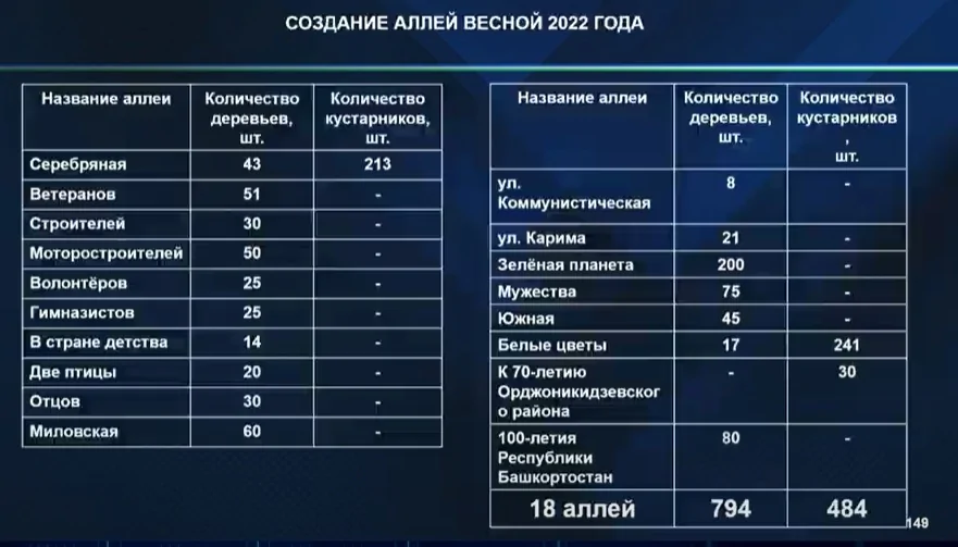 Ратмир Мавлиев рассказал о планах по озеленению Уфы сегодня, 4 апреля, на оперативном совещании правительства. Так, в Уфе планируют высадить: 18 аллей этой весной, 3, 6 тыс. кустов гортензий, 1,5 млн цветов-однолетников, более 3 тыс. деревьев. При этом, как сообщил Мавлиев, если будет нужно, заменят асфальт, скамейки, урны и заборчики, или установят их. Кроме того, хотят обустроить приствольные лунки деревьев – сделать там систему автоматического полива. В этом году – по улице Ленина, на Бульваре Ибрагимова (посадят липы). – Прорабатываем вопрос восстановления зеленого каркаса исторического центра города, – пояснил Мавлиев. – Сделать это возможно путем ежегодных работ по высадке крупномерных деревьев. А вот что высадят в 18 аллеях этой весной: Galery