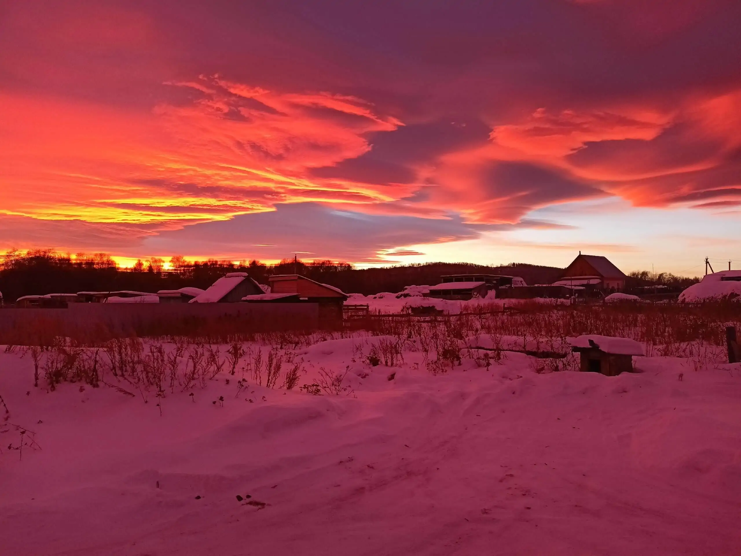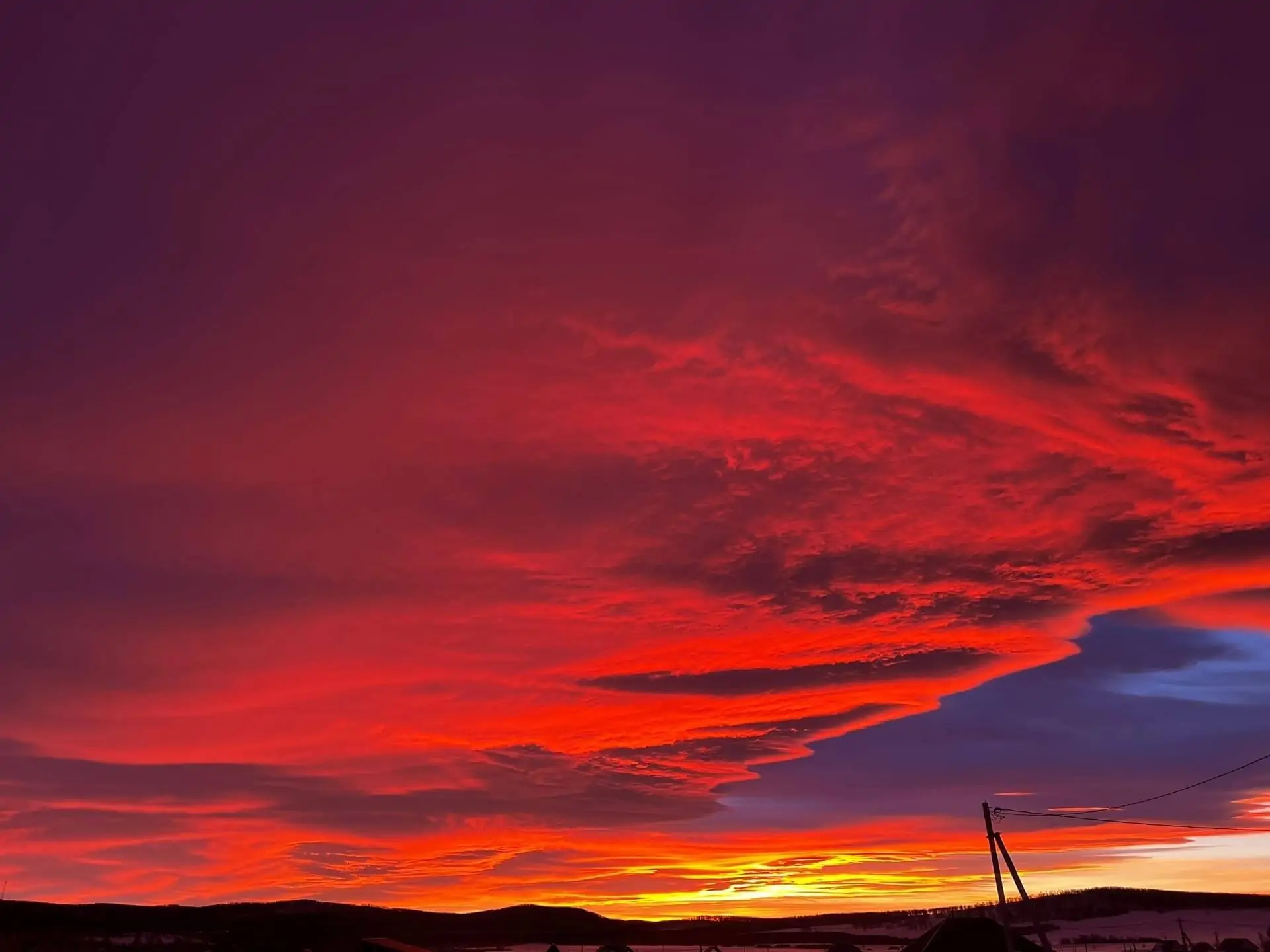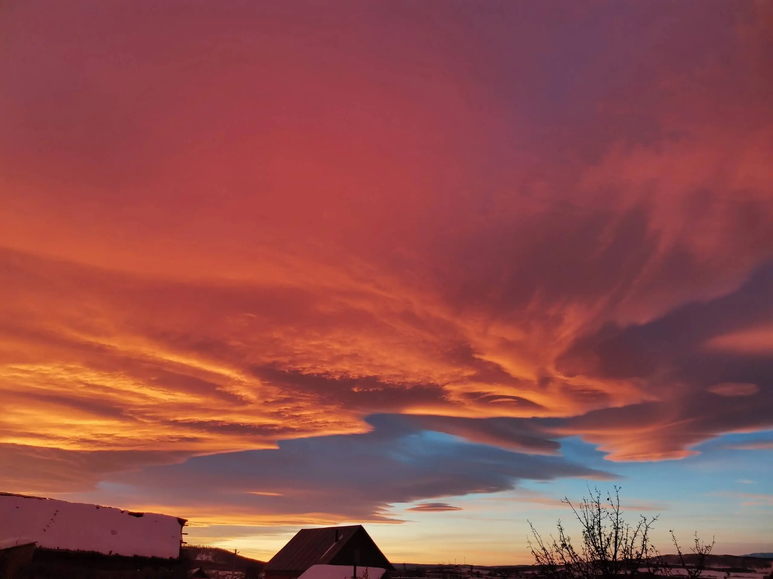 Жители Учалинского района Башкирии делятся в социальных сетях фотографиями сегодняшнего заката. Небо окрасилось в ярко-красный цвет с оттенками ярко-розового, оранжевого и лилового и необычной формой облаков. Фотографии опубликовала «Учалинская газета». Galery В комментариях к публикации подписчики поделились своими фотографиями и впечатлениями от такого красочного заката. «Бабушка мне в детстве говорила: появились такие облака, и потом началась Великая Отечественная война. С тех пор я всегда смотрела на такой закат с опаской…», – пишет Гузель Г. «Нам бабушки точно так же говорили, что это кровь воинов поднимается на небо, и это не к добру», – ответила ей Резеда М. Другие пользователи призвали женщин не искать никаких смыслов, потому что это – простая физика.