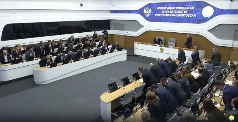 Сегодняшнее оперативное совещание правительства Башкирии прошло не там, где обычно. Как правило, чиновники собирались в большом зале в Центре управления республикой. У одной стены сидели глава республики Радий Хабиров, премьер-министр Андрей Назаров и председатель Курултая Константин Толкачев. На противоположной от них стороне висел огромный экран, где они могли видеть презентации и чиновников из других муниципалитетов. По две другие стороны сидели члены правительства. Посредине зала было свободное пространство, где можно награждать людей. Galery2 Оперативка 10 ноября прошла в другом зале – салатовом, меньше, с узким экраном. В этой комнате члены правительства сидели напротив Хабирова, Назарова и Толкачева. А Хабирову, чтобы выйти из-за стола, пришлось потеснить своего коллегу по правую сторону. (function() { VK.Widgets.Post("vk_post_-25561502_445223", -25561502, 445223, 'wvr3yr3B5yA132llSBBQLZHUwL__'); }()); Зал этот и раньше показывали в пресс-службе правительства Башкирии. Там в понедельник Назаров обычно после оперативок с Хабировым собирал чиновников для еще одного совещания. Например, сегодня в зале с салатовыми стенами обсудили организацию и качество школьного питания, а 27 октября – аварии с участием животных. Фото: правительство РБ На сайте правительства Башкирии можно увидеть и некоторые другие красивые залы, где собираются чиновники. Так, в одном из них они сидят по квадрату, внутри которого стоят цветы. В правительстве в этом зале в октябре прошло заседание по поддержке участников специальной военной операции и членов их семей. Фото: правительство РБ А вот похожий кабинет в Доме республики. Чиновники сидят по кругу во время заседания инвестиционного комитета. По цвету обоев, пола и столу можно заметить, что кабинет уже другой. Galery Есть также красивый зал с колонами, где проводят церемонии награждения. Находится он в Министерстве сельского хозяйства. Фото: правительство РБ